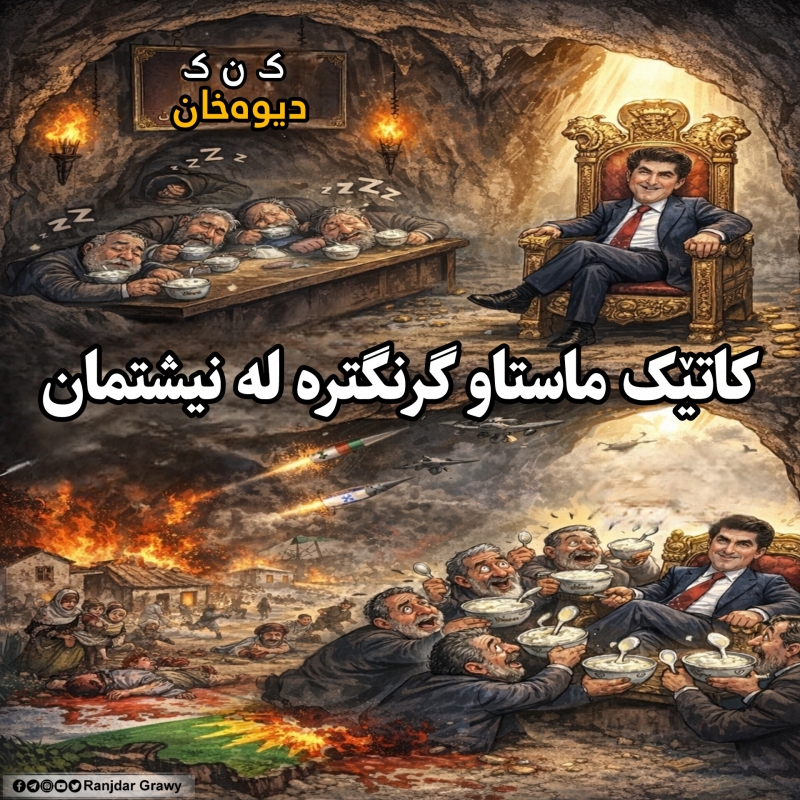 لە کاتێکدا ماوەی چوار هەفتەیە تەواوی ناوچەکە لە نێوان بەرداشی شەڕی ئێران ئیسرائیل و ئەمریکادایە و ڕۆژانە خاکی پیرۆزی باشووری کوردستان دەبێتە ئامانجی مووشەک و درۆنەکان کۆنگرەی نەتەوەیی کوردستان - ک ن ک (دیوەخان) وەک ئەوەی لە خەوێکی قووڵدا بن هیچیان لێ نەبیسترا.